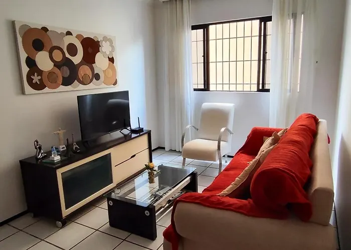 Este apartamento de 96 m^2 está a 10 km do aeroporto Internacional Pinto Martins. Terraço convida os hóspedes a se relaxar. A propriedade dispõe de piscina ao ar livre.
